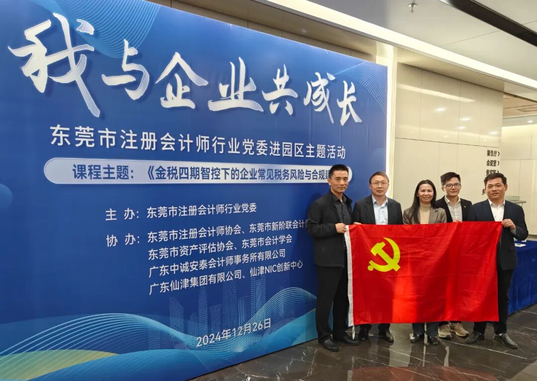 2024年12月26日,由东莞市注册会计师行业党委主办,东莞市注册会计师协会、东莞市新阶联会计师分会、东莞市资产评估协会、东莞市会计学会、广东中诚安泰会计师事务所、广东仙津集团有限公司协办的“我与企业共成长”活动在松山湖•仙津NlC创新中心园区顺利举行。市注协秘书长蔡雪梅同志,市注册会计师行业党委委员、市注协副会长、广东中诚安泰会计师事务所董事长黄鹏程同志,中诚安泰副董事长王书明同志,中诚安泰董事朱盛全同志,部门经理、税务师行业高端人才何其隆同志以及来自各企业的高管、财务人员共70多人出席活动。